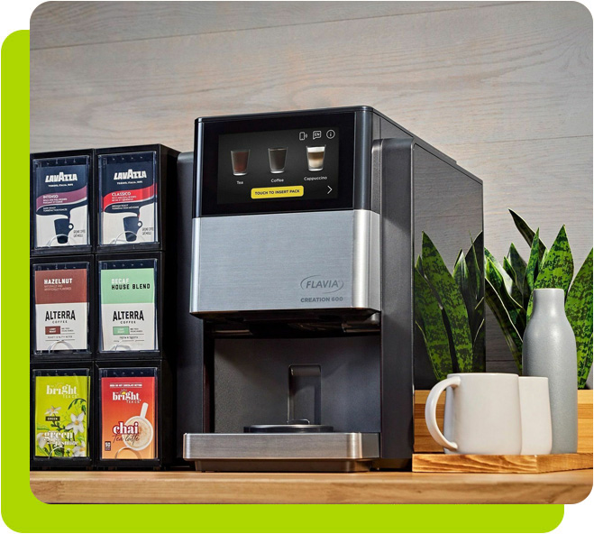 The Flavia CREATION 600 was designed with your employees in mind. Increase employee productivity, lower stress, and promote belonging and wellness in your Salt Lake City and Phoenix break rooms.